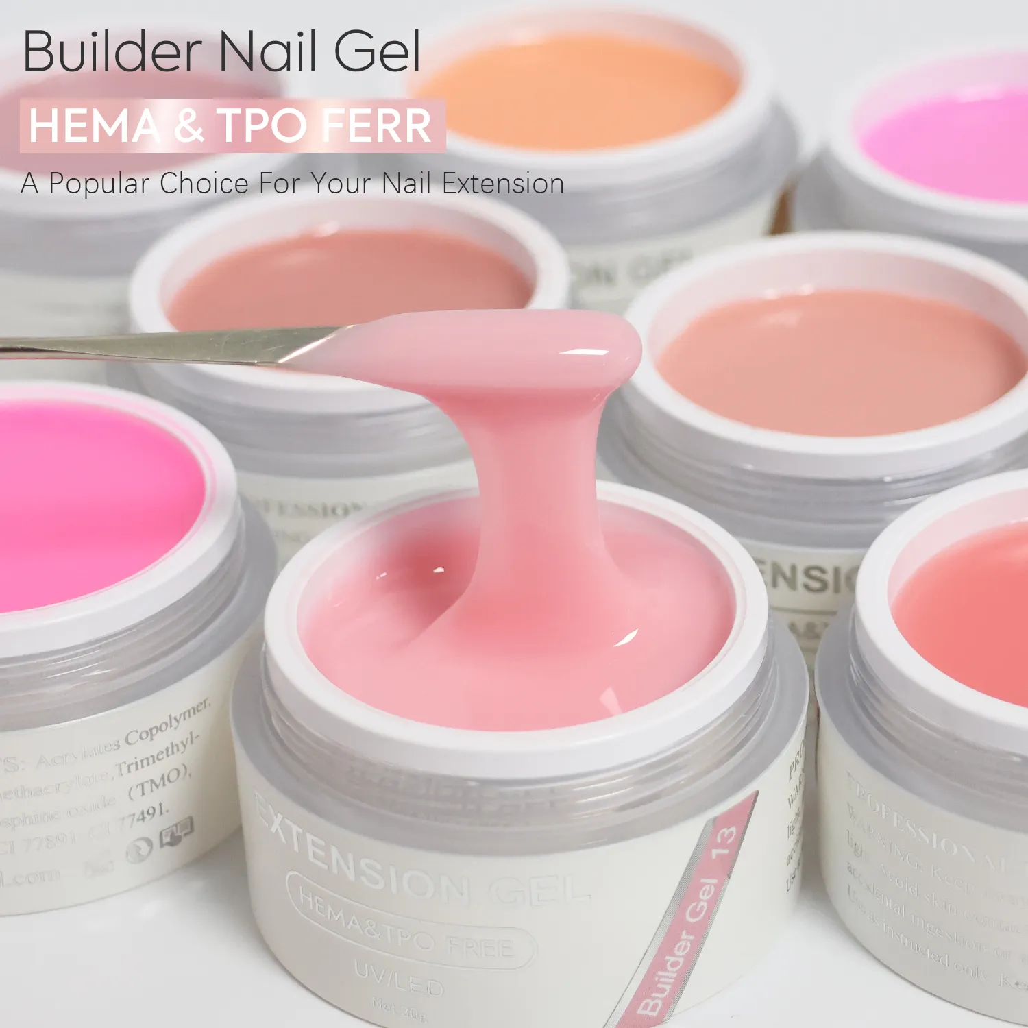 Willkommen zum Kauf unserer HEMA & TPO-Free Builder Nagelgel Hersteller Produkte mit 48 Farben und starke Verlängerung Leistung. Factory-direct Großhandelspreise, niedrige MOQ, kostenlose Proben und professionelle OEM/ODM Dienstleistungen für Nagelmarken.