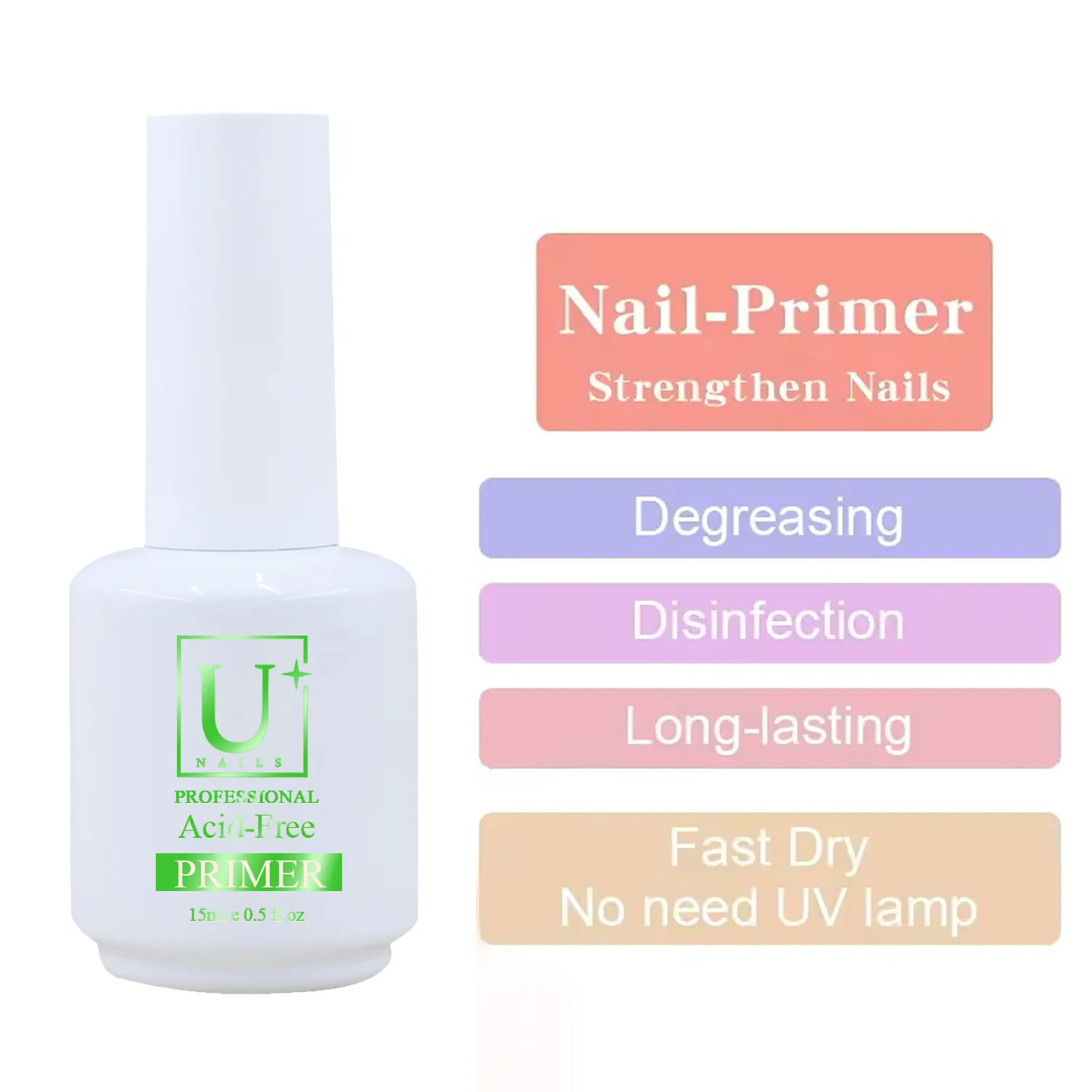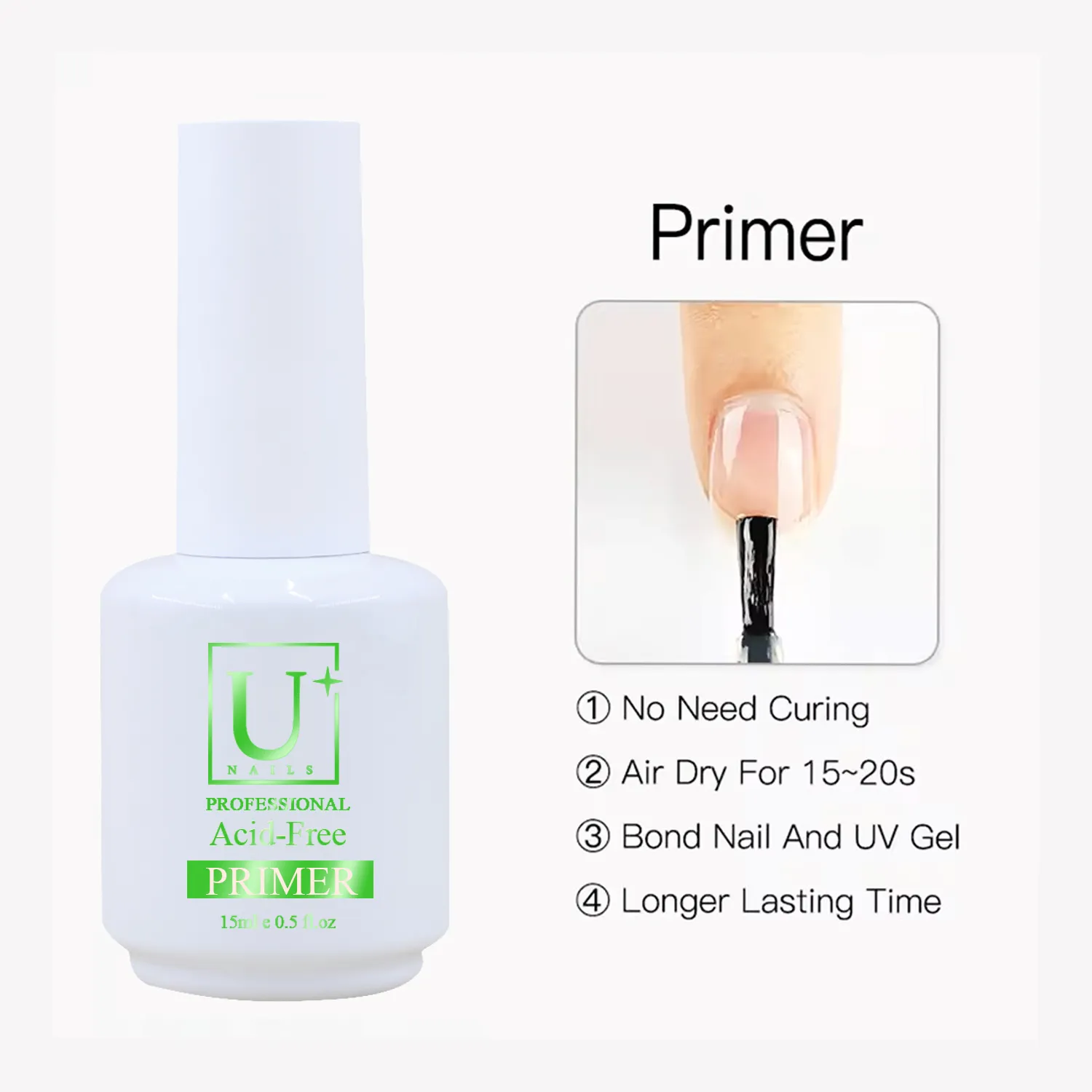 - Adhérence améliorée et longue durée : Adhère efficacement à l'ongle naturel et au gel UV pour une tenue plus longue, réduisant ainsi le décollement, le soulèvement et la séparation prématurée.