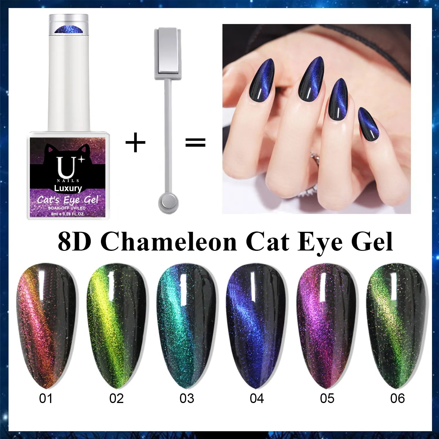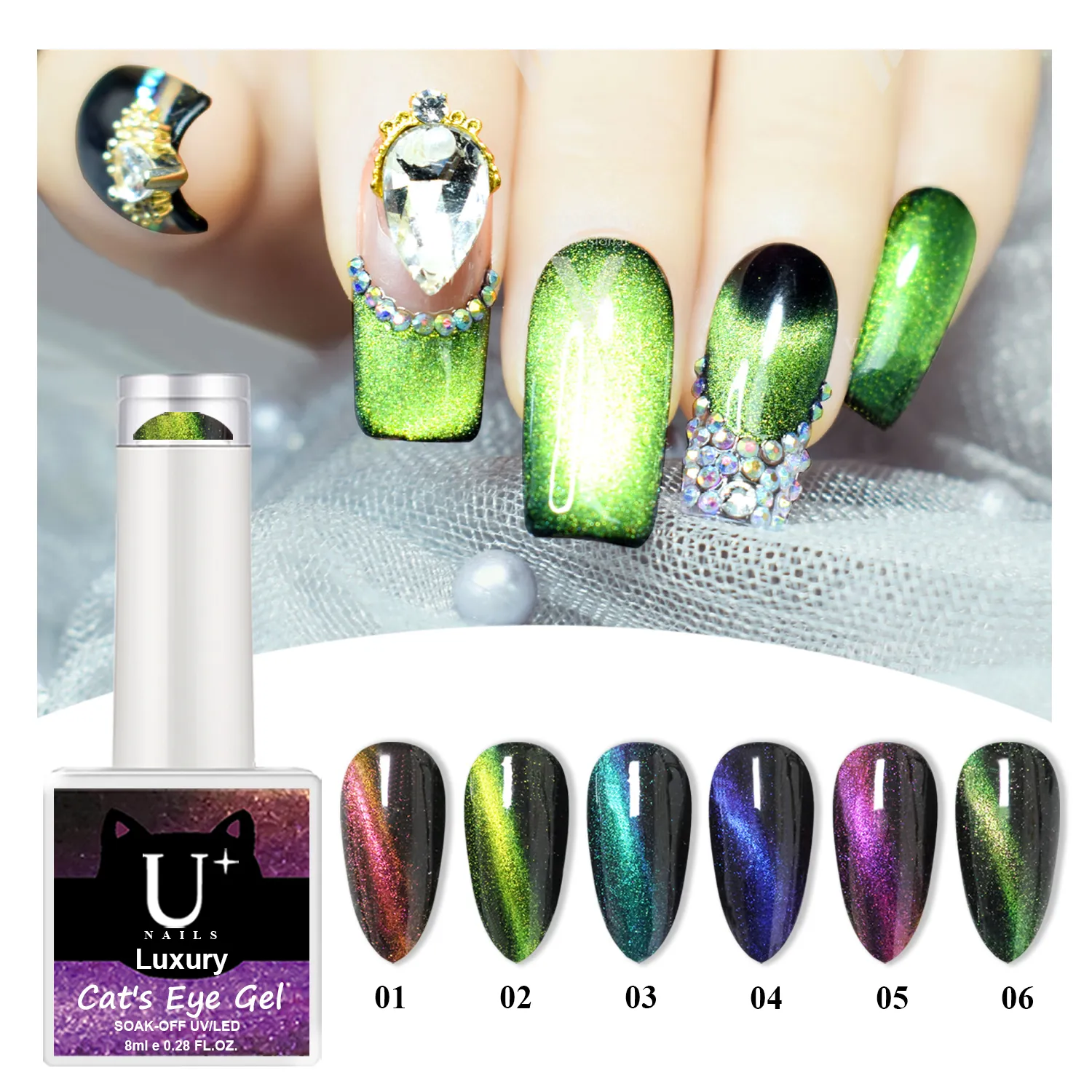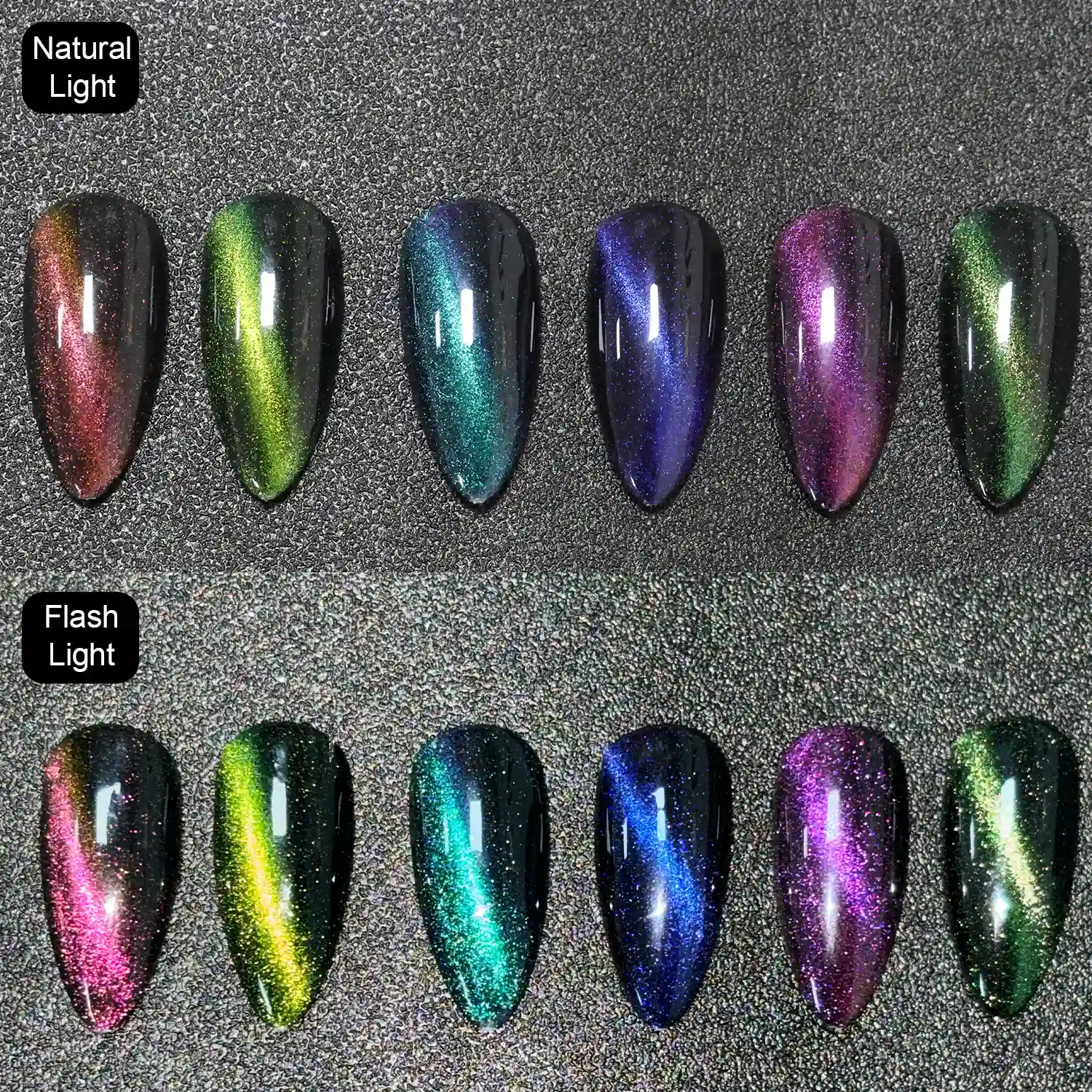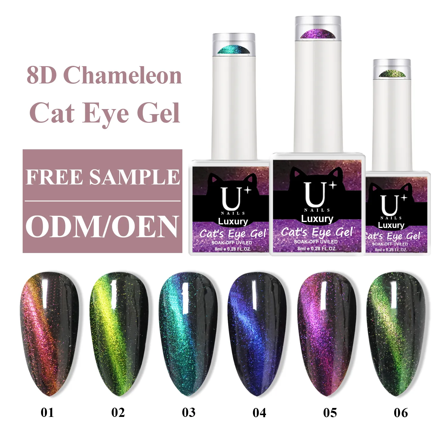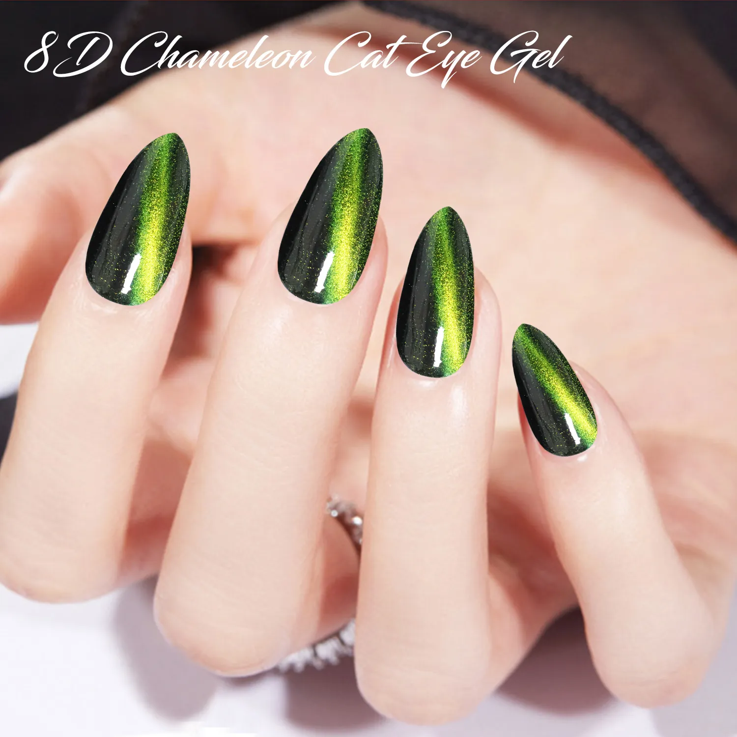 Welcome to purchase our wholesale 8D chameleon cat eye gel polish, featuring a TPO-Free, high-shine formula that shifts colors under light for stunning magnetic effects. Perfect for nail salons and private label brands seeking vibrant, long-lasting cat eye gels at factory wholesale prices.