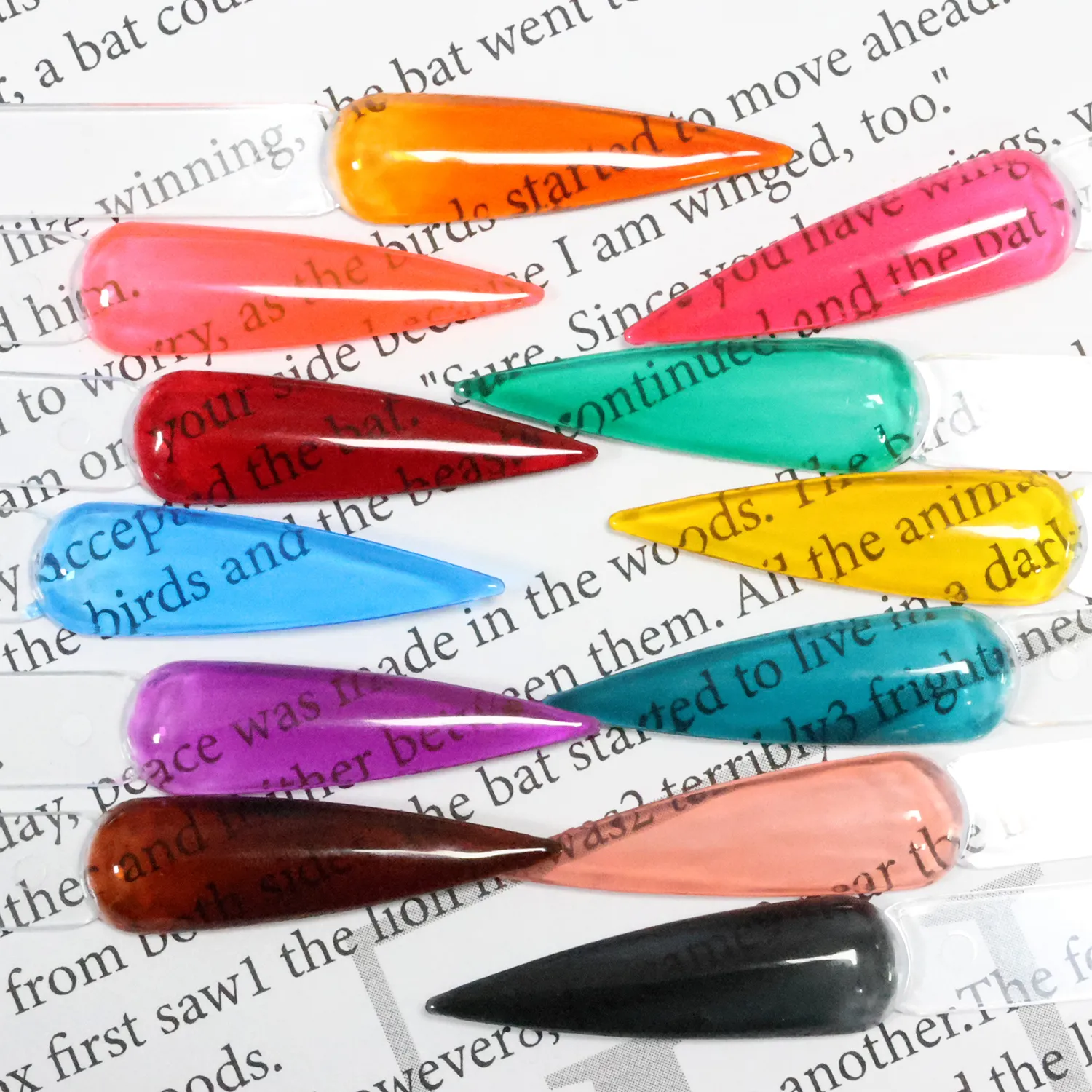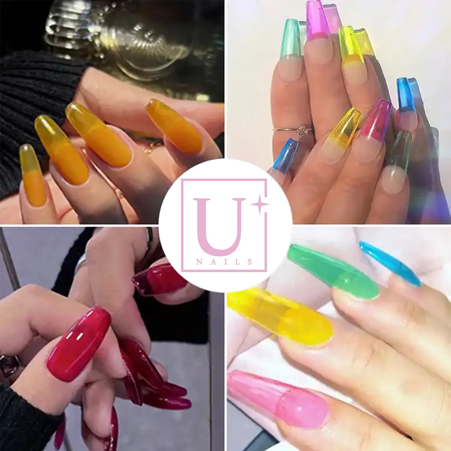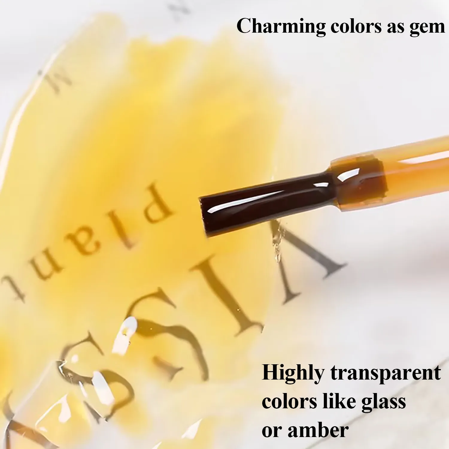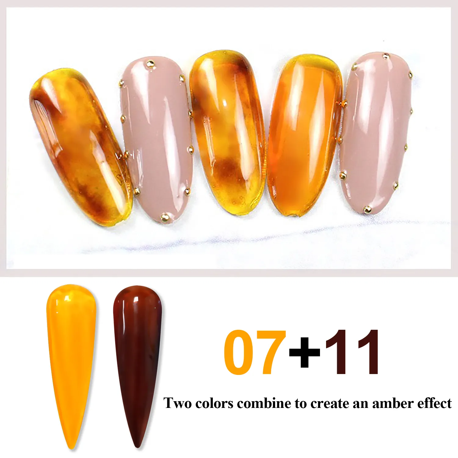 - These are 12 Transparent Amber Shades: Offers a crystal-clear jelly texture that enhances natural nails with a soft, glossy amber glow.